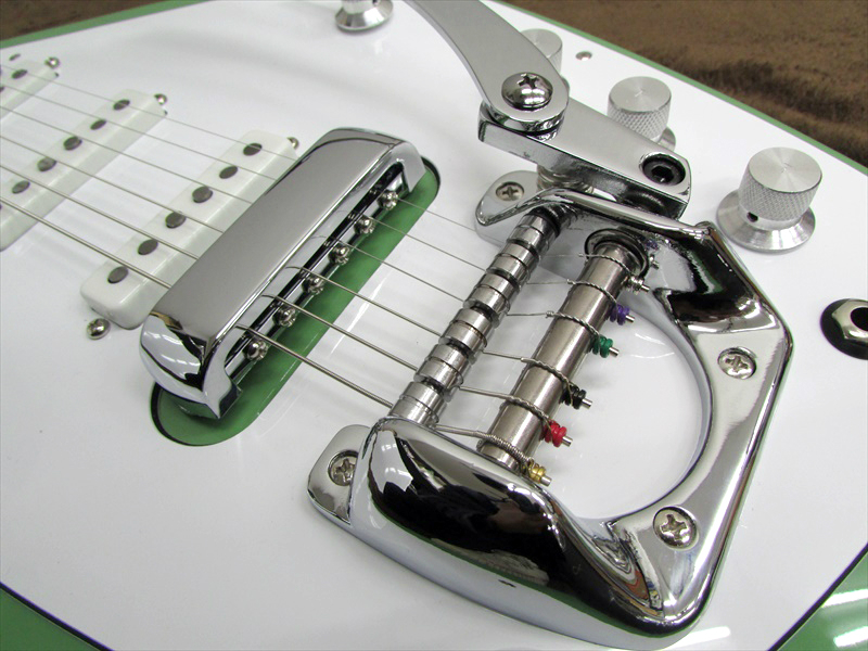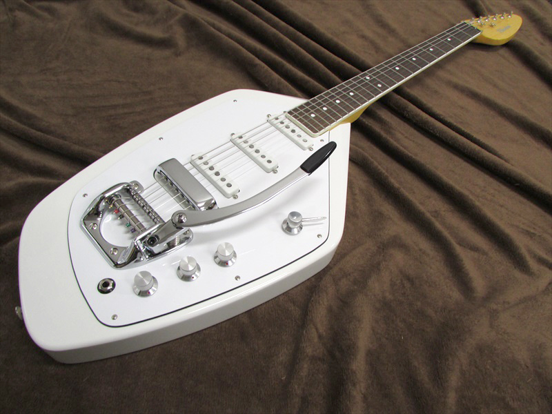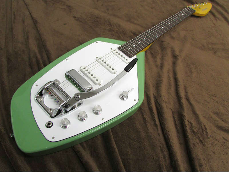 60年代、多くのアーティストによって使用されていたイギリス製(イタリア/USA製)ギターがあります。その名は “VOX Phantom“ビザール・ギターとのカテゴリーに属されることも多いその特異なルックスと、立ち上がりの良いソリッドでロックなサウンドは、市場から姿を消した後も名機として多くのファンに愛用され続けています。その “Phantom“を、こよなく愛し、その素晴らしいルックスとサウンドを引継ぎ、USA製にて蘇ったハンドビルド・ギター“Phamtom Guitarworks“。USA製ならではの質の良いマホガニーボディ、メイプルネック&ローズ指板を使用し、塗装にはラッカー塗装を採用。Kent Armstrongにデザインを依頼し、当時のサウンドを見事によみがえらせたオリジナルピックアップ。UK製の最初期のみの仕様である"Phantom"スクリプト・ロゴを完全に再現し、そのほかパーツの一点一点の復元にもこだわりながらも、当時の欠点であったピッチの改善や、USA製にこだわりながらもUKの流れを完全に踏襲したクリアで生々しいサウンドもルックス同様に魅力的です。
