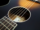 ゴールデンエラ=20's~30'sの戦前"Pre-war"、1929年から始まる世界恐慌が進んだ30年代中期にインスピレーションを得て作られたこのモデルは、スプルース単板トップにマホガニー単板サイド&バックのスキャロップ・X・ブレーシングの"Atkin"仕様を採用しながら、極シンプルな装飾、ピックガードをつけないオープンな鳴り、V-ネック、つや消しのラッカー塗装、その塗装の感じも古めかしい荒めの塗装の吹き方など、シンプルかつ細かいマニアックなモデルです。