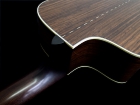 アイボロイドバインディングにヘリンボーンを施したルックスはもちろん、自然に焼けたような色合いのTOPには十分寝かせたシトカ・スプルース単板を、サイド&バックには木目のはっきりしたインディアン・ローズウッド単板を使用。いわゆるハイエンド・ピアノトーンとは違った、洗練されすぎない高級感が魅力的です。