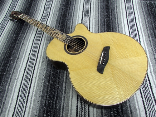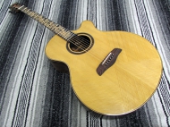 アラスカ・スプルースとバリニーズ・ローズによるオール単板仕様。000とジャンボの中間とも言えるグランドコンサート・サイズのこのギターはノンスキャロップ・ブレーシングによるパワフルな鳴り!!