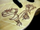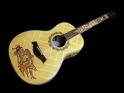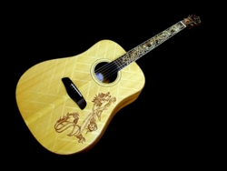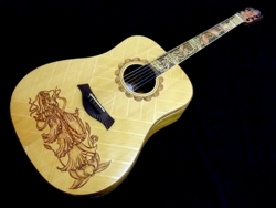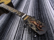 ボディ全体に入れられた木彫りによる模様は、その美しさだけでなく複雑な倍音を生み出し、ボディ全体が震えているのが分かるほど豊かな鳴りは非常に気持ち良いまさにアコースティックサウンド。