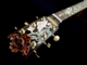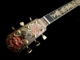 指板には4羽の小鳥のインレイ、ヘッドには羽を携えた笛吹きと鳩の彫刻という平和的なモデルです。