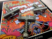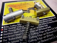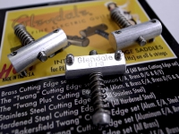 Glendale の CUTTING EDGE SADDLE はサドルの角度に合わせて、隣のサドルに当たる面を斜めにカットしてあります。この工夫によりサドル同士のすき間が少なくなり、より安定したピッチを得られるようになっています。さらにいくつかの材質を用意し、プレイヤーの細かいニーズに対応します。Glendale カッティングエッヂ・コンペイセッド・サドルは全てインチサイズのブリッジ対応になります。