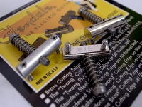 ご存知のとおりテレキャスターのサドルは各弦ごとにオクターブ調整が出来ず、テレキャスター・プレイヤー、特にハイポジションを多用するプレイヤーの悩みの種でした。それを解消するためにサドルを斜めにしたコンペンセイテッドサドルが【 Glendale (グレンデール)】より誕生しました。