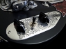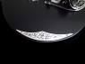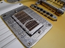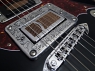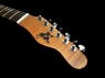 軽量なアルダーボディ、ペグに向けて17°の角度をつけたヘッドストック、ヒールカットのセットネック仕様など、芳醇なサスティーンと弾き易さ、そして引き応え。彫金の入ったアルミ削りだしのオリジナルパーツもクールです。