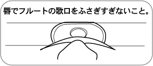 4.唇でフルートの歌口をふさぎすぎず、なるべく空けるようにすること。