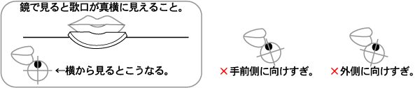5.唇につけて鏡で見ると真横に見えるように構える。