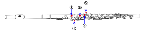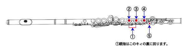 ・フルート初級講座(基本姿勢) <<・楽器の持ち方(左手)|・(右手) >>・運指(押さえ方【音程】)