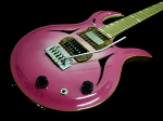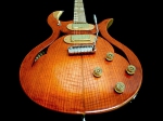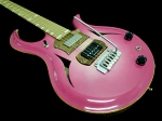 16インチボディのセミアコスタイル。上品なカーブを持たせたメイプルトップに、センターブロック&カッタウェイサイドにメイプル、サイドにメイプルの上にローズウッドを張ったプライ仕様、そして、バックにはチェリーウッドを使用し、ロングスケールを採用することで、P.A.F.スタイルのピックアップとの組み合わせで、立ち上がりが早く芯が太いスウィートなサウンドを実現。モデル名の様に美しい造形とハンドメイドの温もりと質感、太くスイートでありながらも、歪ませた際の野性味ある攻撃的な要素も感じるサウンドで、他にはないまさにPantic&Sonならではのモデルです。