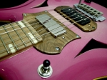 セイモア・ダンカン・ピックアップの2ハムバッカー仕様のセミホローモデル。2Volume、1Tone、3WaySelectorのシンプルなコントロールですが、それぞれのノブのPush-Pullにより、コイルタップによるシングル⇔ハムバッカーの切替、フェイズが可能。