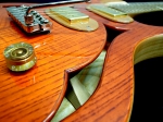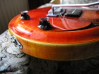 とても薄いボディー厚なのに、しっかりと箱のアコースティック感があるサウンド。フロントピックアップはフルアコのそれほど曇らず、適度な軽さと明るさがあり、あらゆる音楽に合いそうです。
