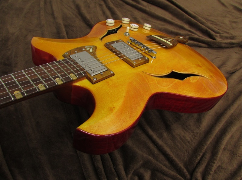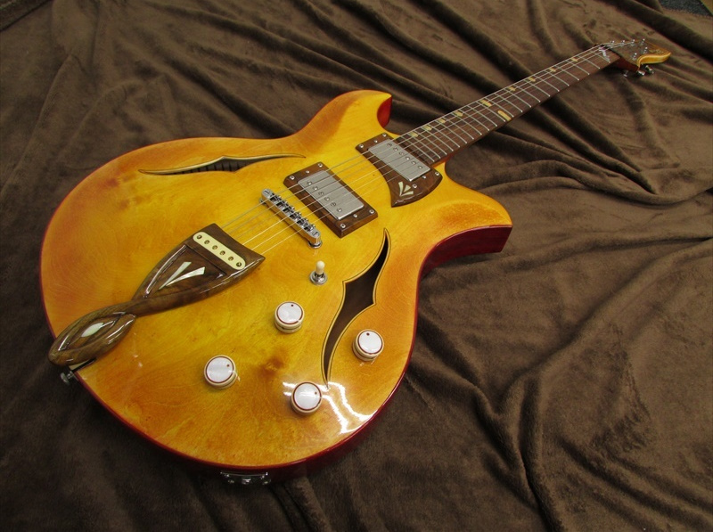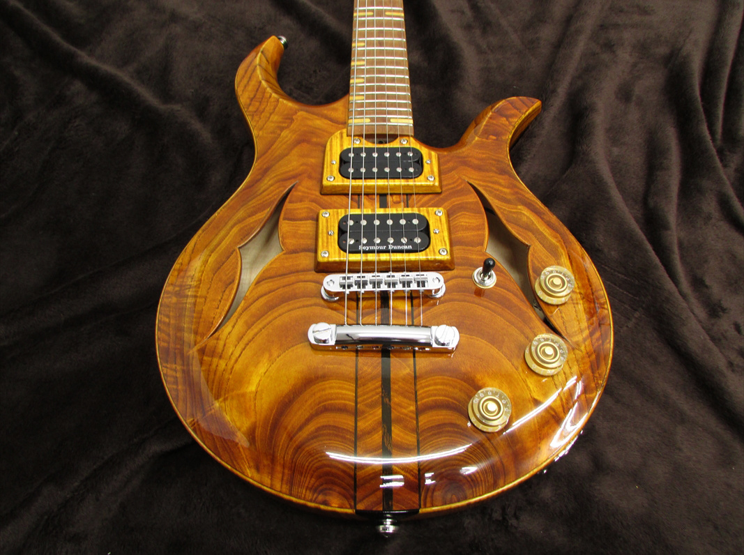 アッシュ/メイプル/ウォルナットをボディに使用したセミホローボディの独創的なモデル。