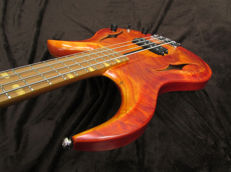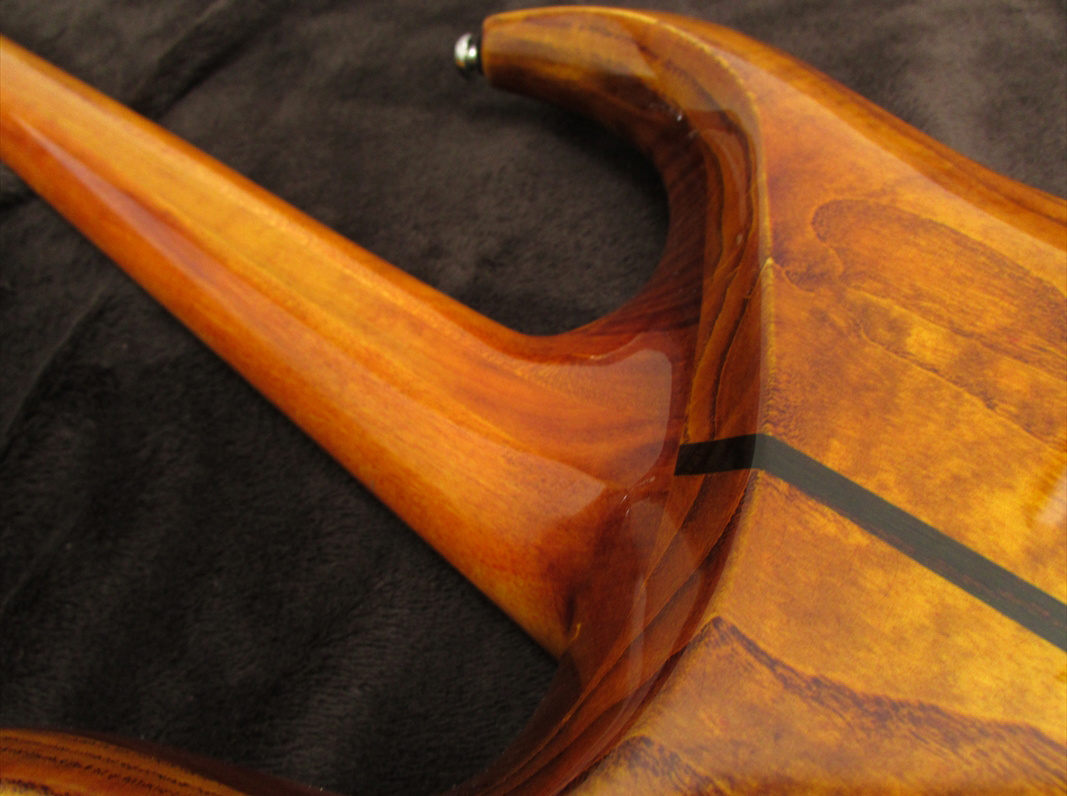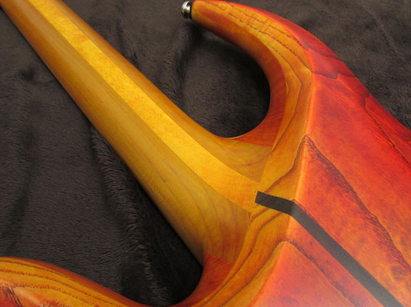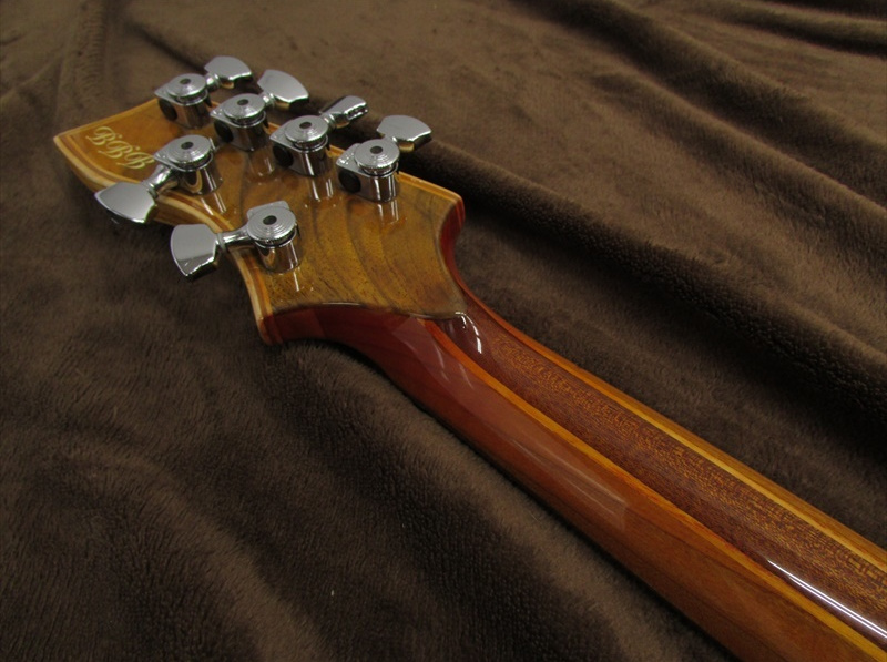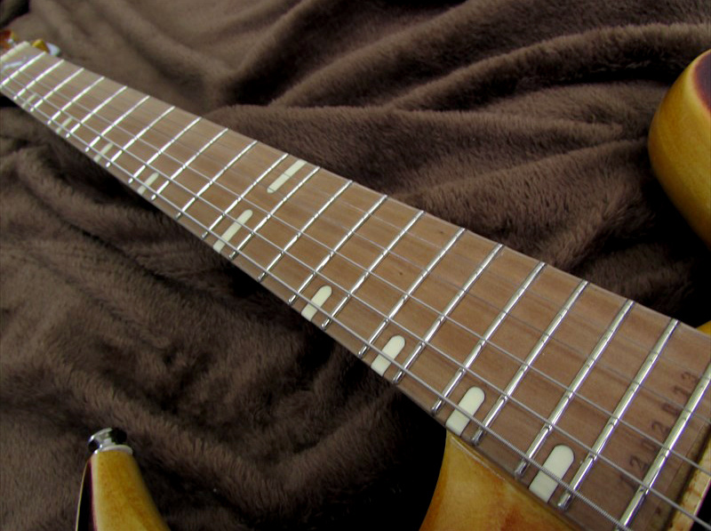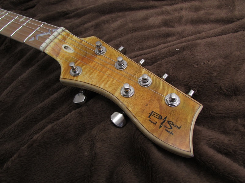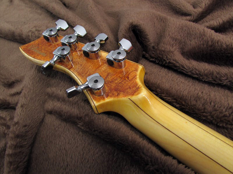 ハイポジションに向かいソフト変化する少し太めのVシェイプのネックは、非常に弾き易く、24フレットまでのアクセスも容易。トーンは非常にアコースティックなトーンが特徴。
