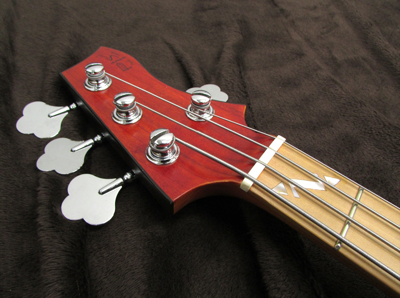 2V,1Tとシンプルなコントロールを持ち、ジャズベースタイプのダンカンピックアップながら、SJB2をセレクトし出力を持ち上げることで、アッシュとメイプルのボディの立ち上がりの早さと、パワー感を程よくミックスした太くも輪郭のあるジャズライクなファットJB系サウンド!!太めのネックシェイプに、ネック裏のみサテン仕上げの肌触りも最高。