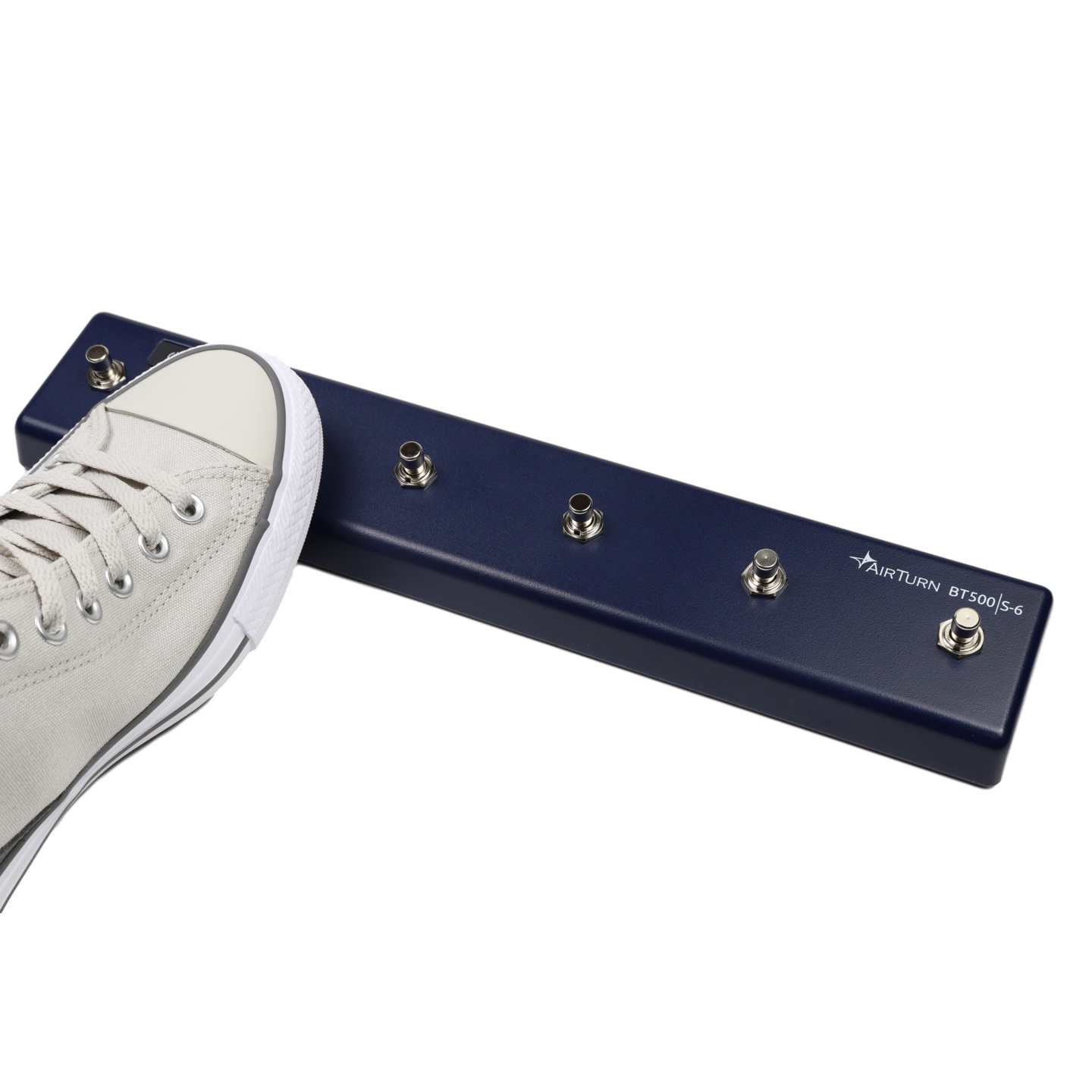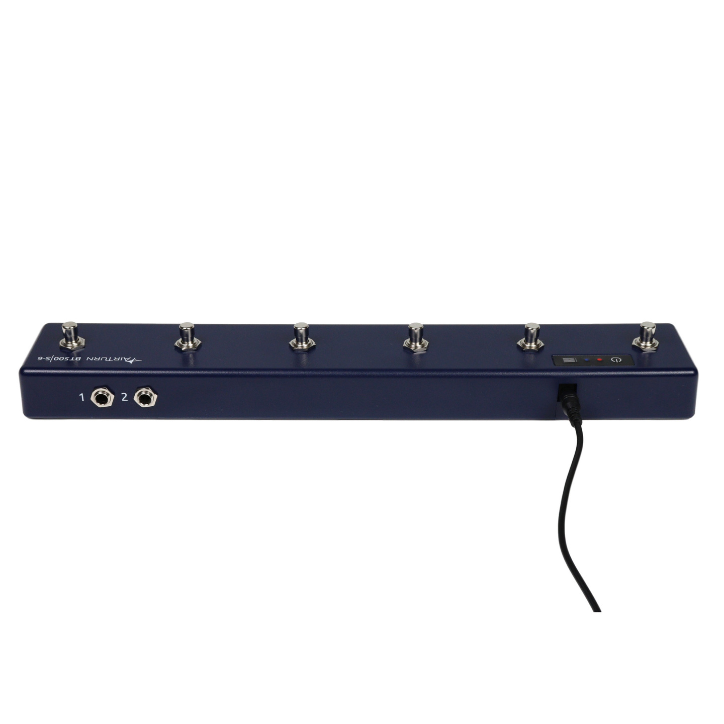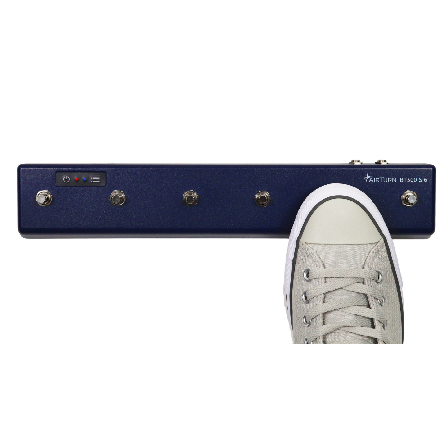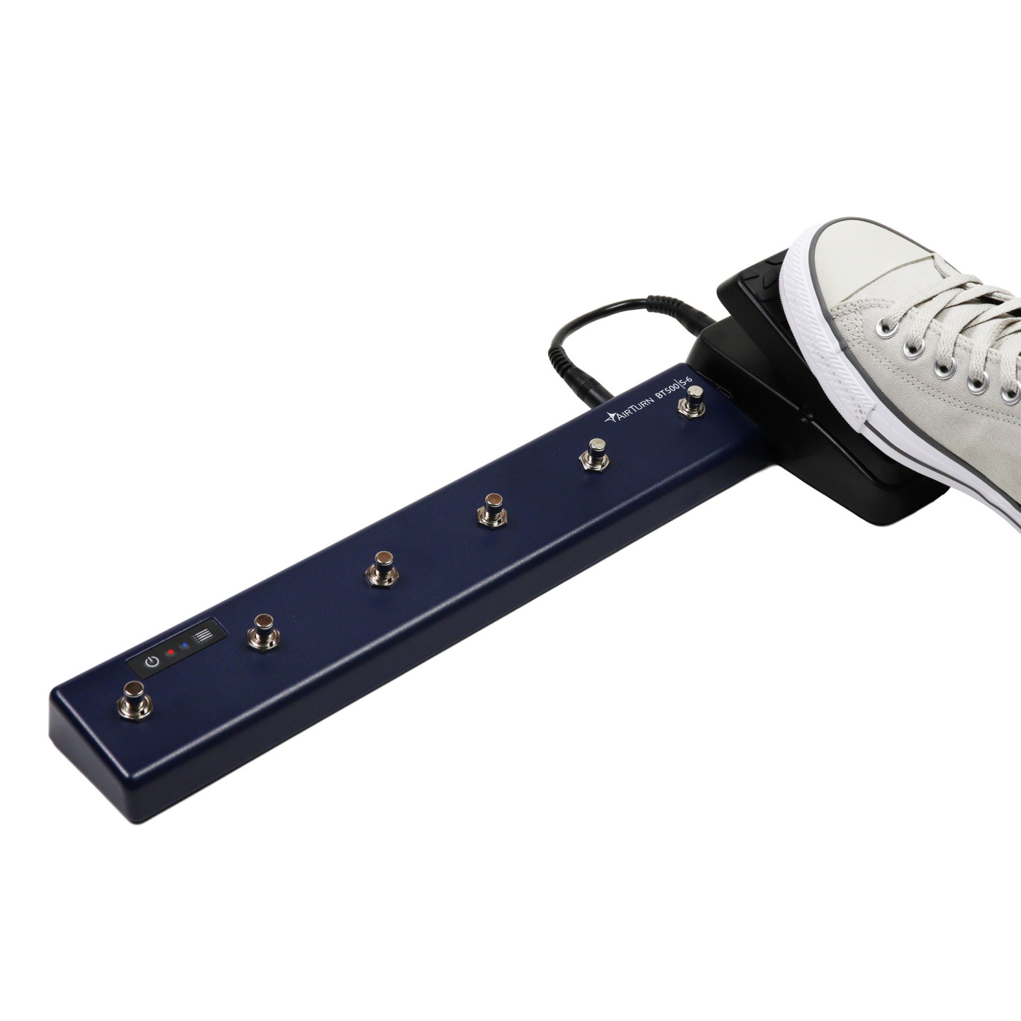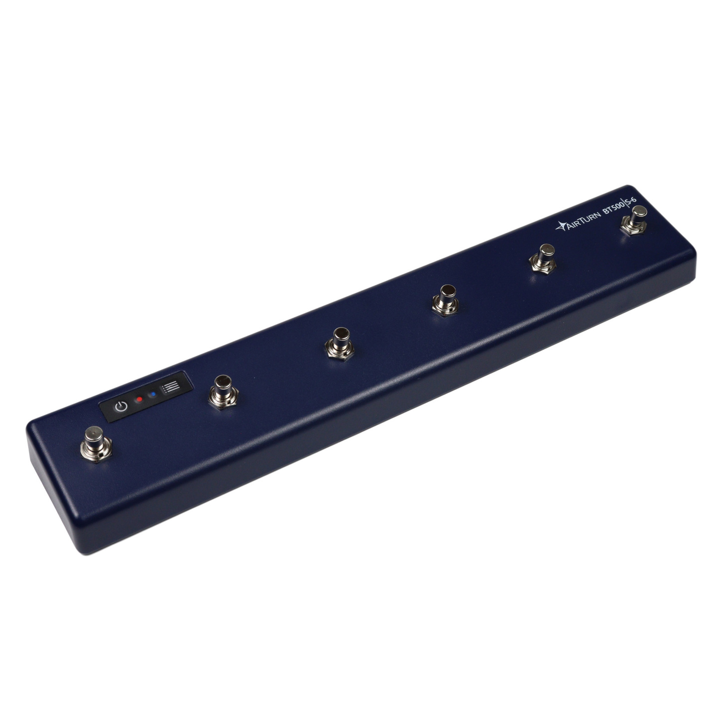 耐久性のあるストンプボックス設計と静かなスチールスイッチを備えた AirTurn BT500S-6 は、ペダルボードセットアップに簡単に統合でき、充電式バッテリーまたはオプションの 9V 電源で駆動します。 ペダルを追加するための 2 つの 1/4 インチ アナログ入力が追加され、ボリューム、ワウ効果、スクロール速度などの可変パラメーターを制御するようにプログラムできます。