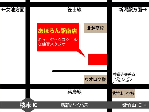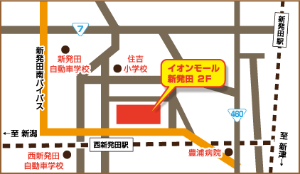 ●国道7号(新新バイパス)新発田ICより、新潟県道60号住吉上館線(新発田南バイパス)経由で約5分。