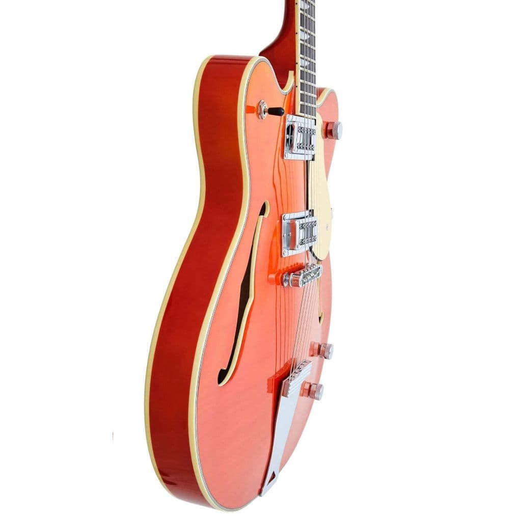 - Body: Bound Laminated Maple, Flamed Maple Top, Bound F-Holes