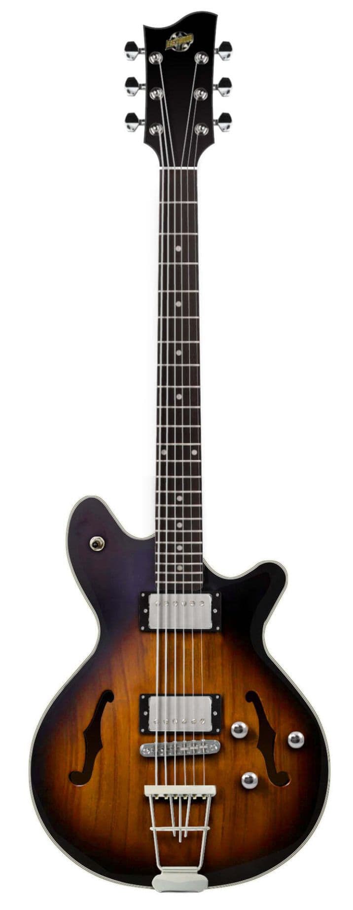 - BODY: Semi-Hollow construction. Mahogany Back and Sides, Maple Top (Flame on Blue Flame finish)