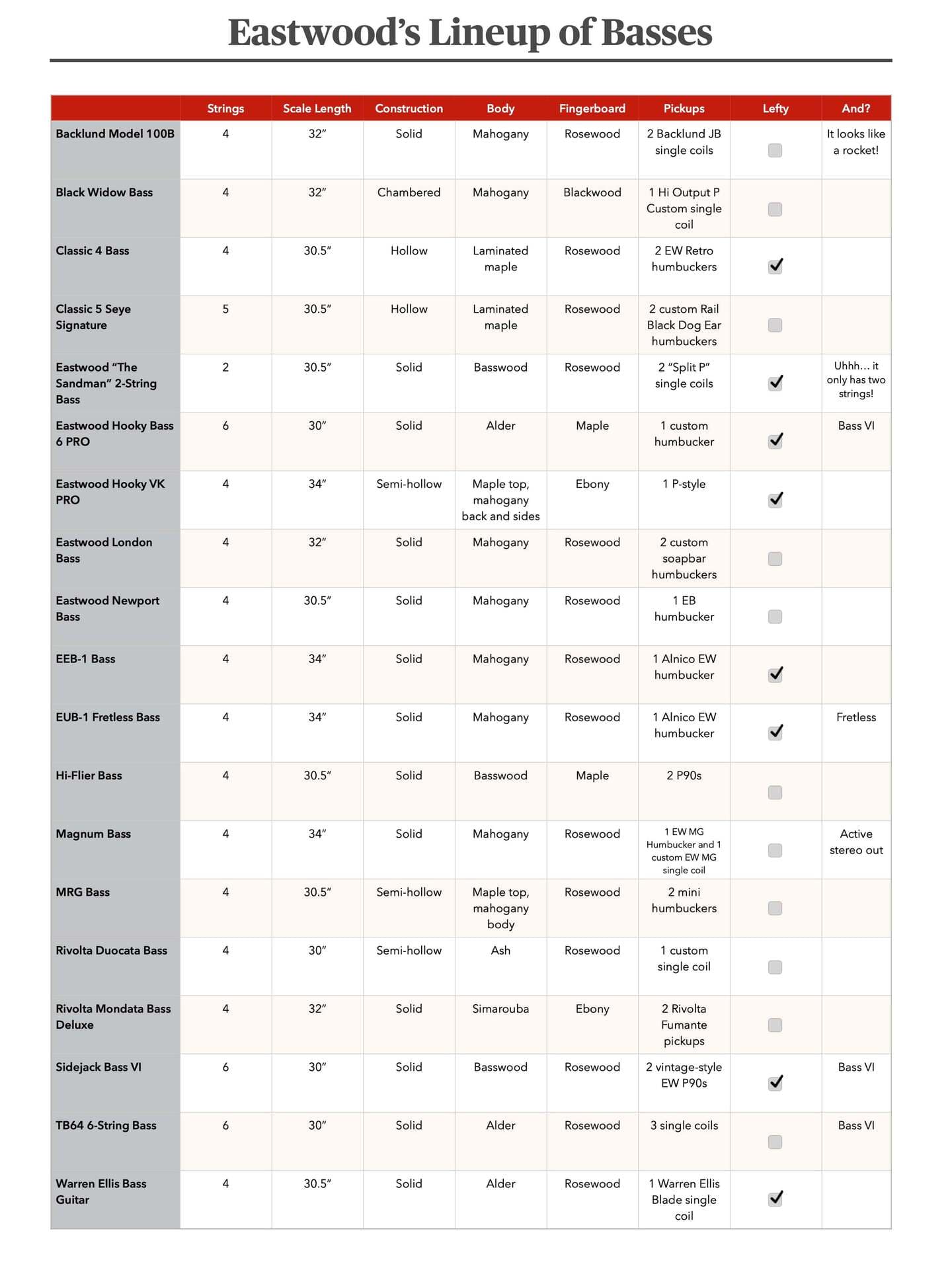イーストウッドのもう一つのヴィンテージ感あふれるモデルは、Newport Bassです。ネックポジションにはシングルEWハムバッカーが搭載されており、このピックアップのヴィンテージバージョンは「マッドバッカー」という愛称で親しまれることもあります。フィンガーレストとストリングカバーも、オールドスクールな雰囲気をさらに高めています。軽量で、ショートスケールなので演奏性も抜群です。