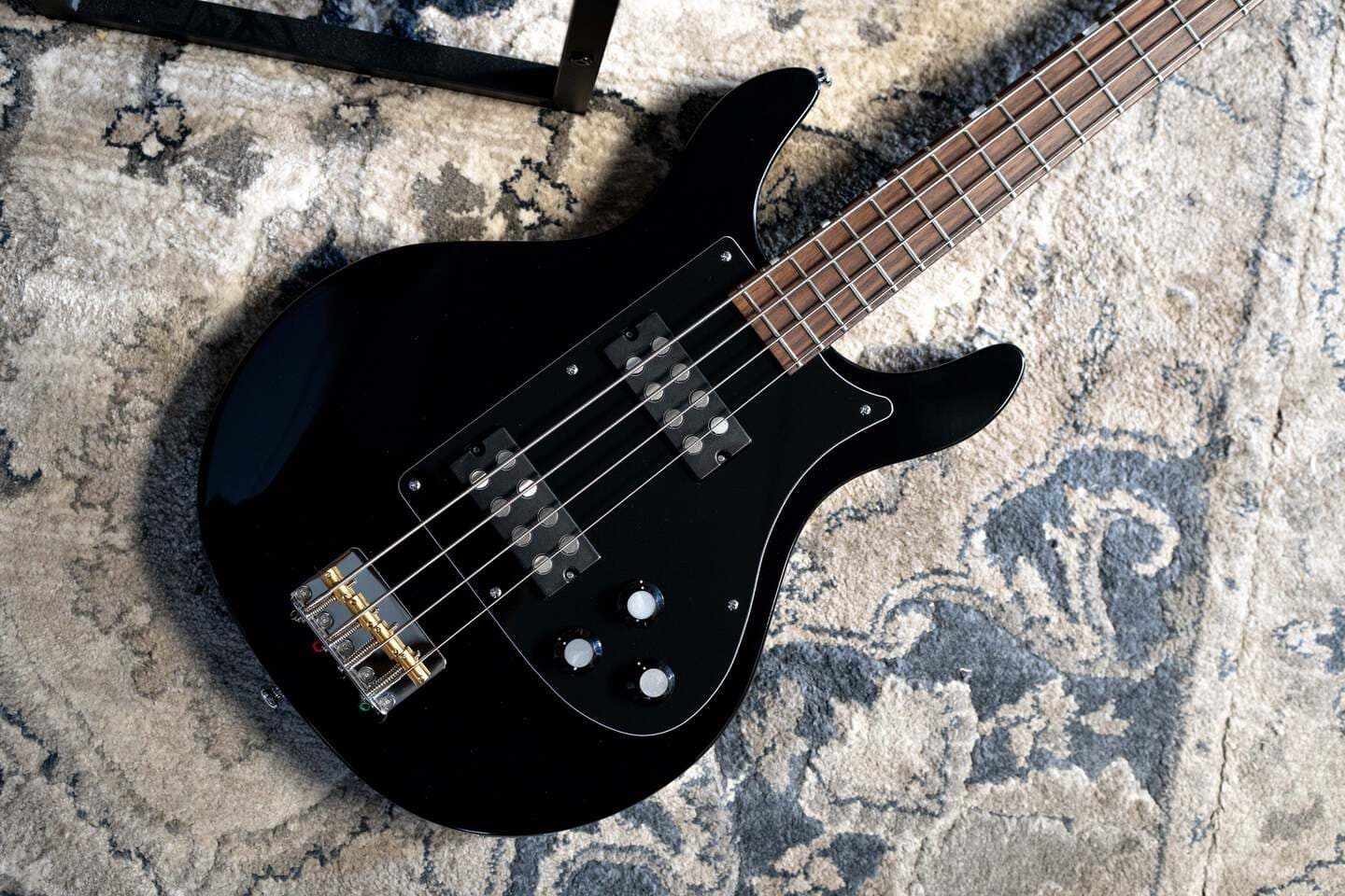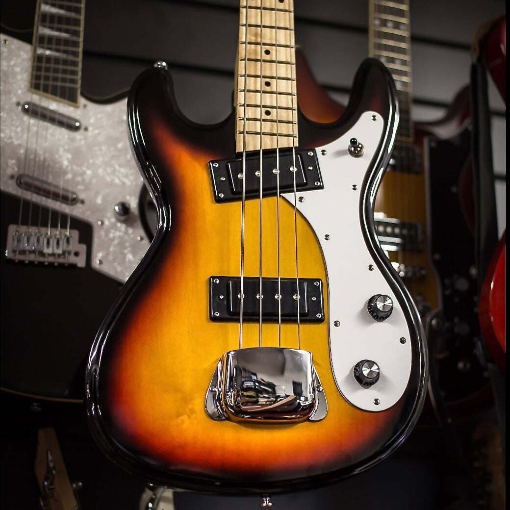 最後にご紹介するのは、4弦ベースのラインナップの中でも特に注目すべきEastwood London Bassです。ソリッドマホガニー材から削り出されたこのベースには、パワフルなサウンドが特徴のカスタムソープバーピックアップが2基搭載されています。London Bassにはマスターボリュームとマスタートーンコントロールに加え、最もクールな機能の一つであるブレンドノブが備わっています。歯切れの良いサウンドがお好みでも、少しだけ「パンチ」が欲しいですか?それとも、普段は低音域が中心のプレイヤーでも、ソロでは少しだけ存在感を際立たせたいですか?London Bassのブレンドノブを使えば、そんな願いが叶います。(ところで、ベースソロを演奏するんですか?!すごいですね。次のライブの日程をぜひ教えてください。)