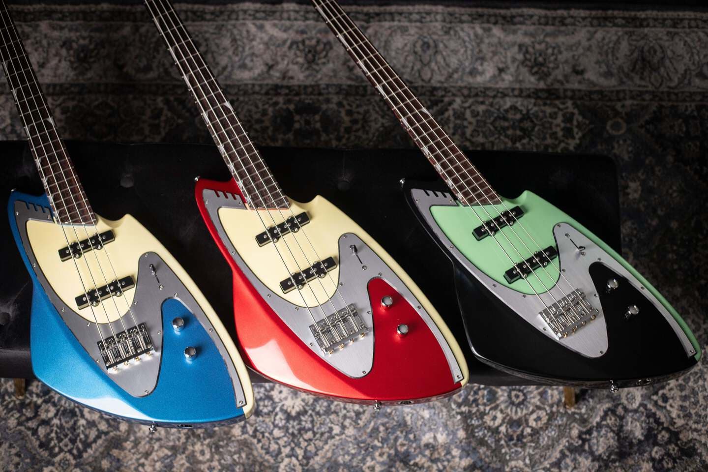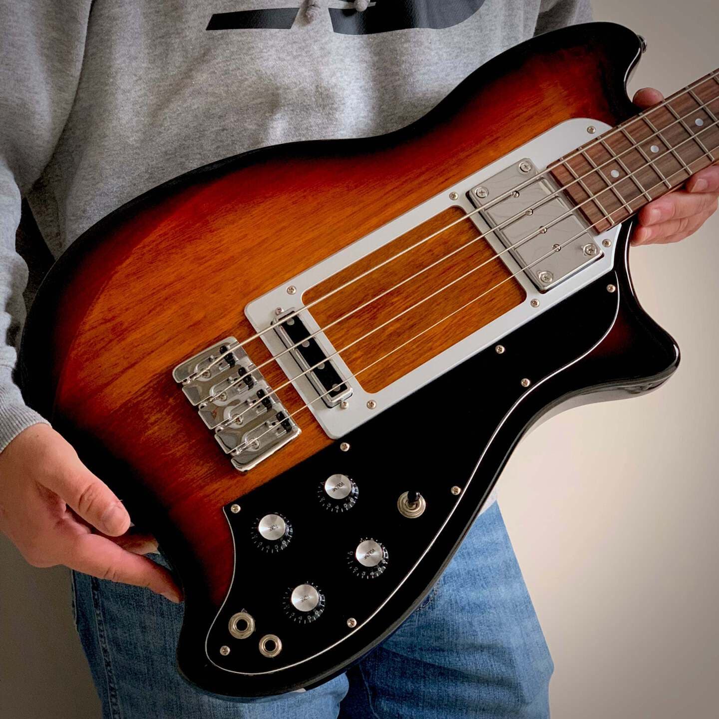 一方、全く型破りなルックスをお探しなら、Backlund Model 100Bベースはいかがでしょうか!このベースは、ベースギターというよりクラシックカーのテールフィンを思わせるデザインです。ジョン・バックランドのデザインすべてに共通するように、アールデコ調のラインと宇宙船のような輪郭が融合し、独特の雰囲気を醸し出しています。見た目が目立たなくても、そのサウンドは間違いなく印象的です!デュアルJBシングルコイルピックアップが、太くパンチの効いた低音と明瞭な中音域を実現します。さあ、演奏を始めましょう!