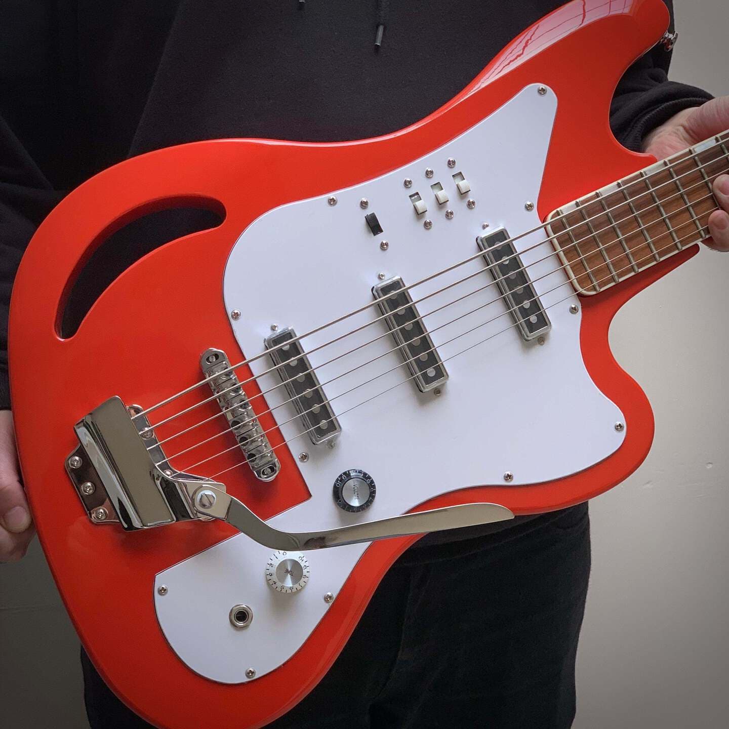 Bass VIシリーズの第一弾は、 Sidejack Bass VIです。大人気のSidejackシリーズの他の楽器と同様に、このモデルも60年代のビンテージMosriteギターをベースにしており、「リバースストラト」ボディシェイプとP90ピックアップを搭載しています。この洗練されたBass VIは、Tune-O-Maticブリッジと優れたフィーリングのビブラートを備えており、クラシックな「ティックタック」ベースから壮大なアンビエントサウンドスケープまで、あらゆるジャンルに対応します。左利き用もご用意しています!