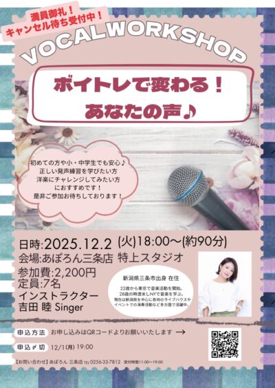 ボーカルワークショップ ボイトレで変わる!あなたの声♪開催!