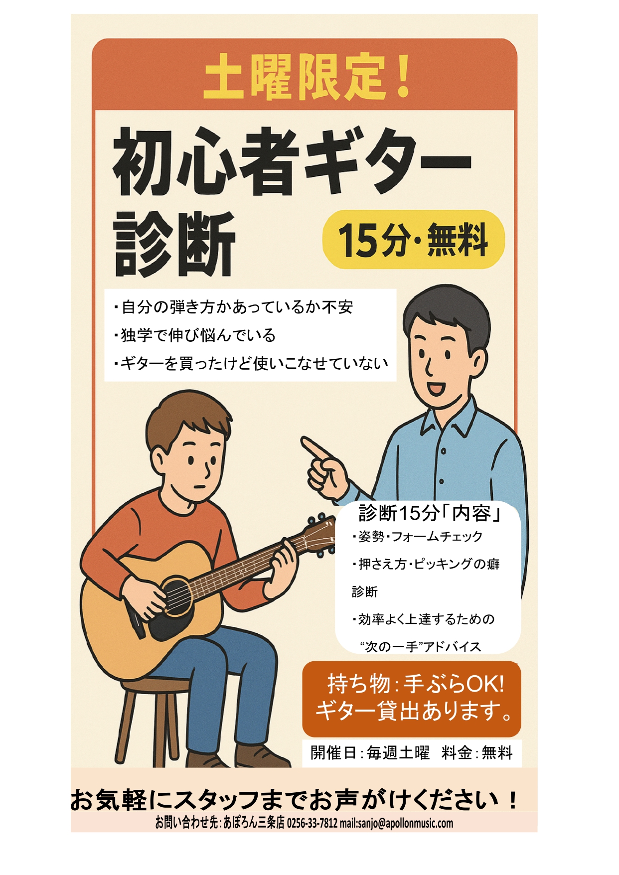 【ギター診断・土曜限定・無料!】