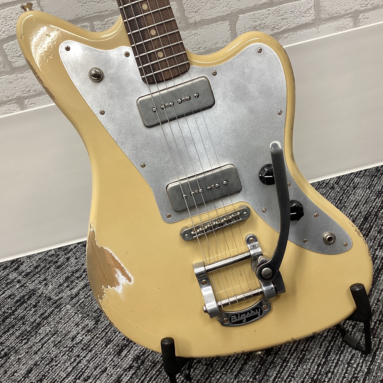 ジャズマスター・シェイプのJM6!当個体はDesert Sandカラーを採用。Aluminumピックガードとの組み合わせで、他とは被らない個性的なルックス