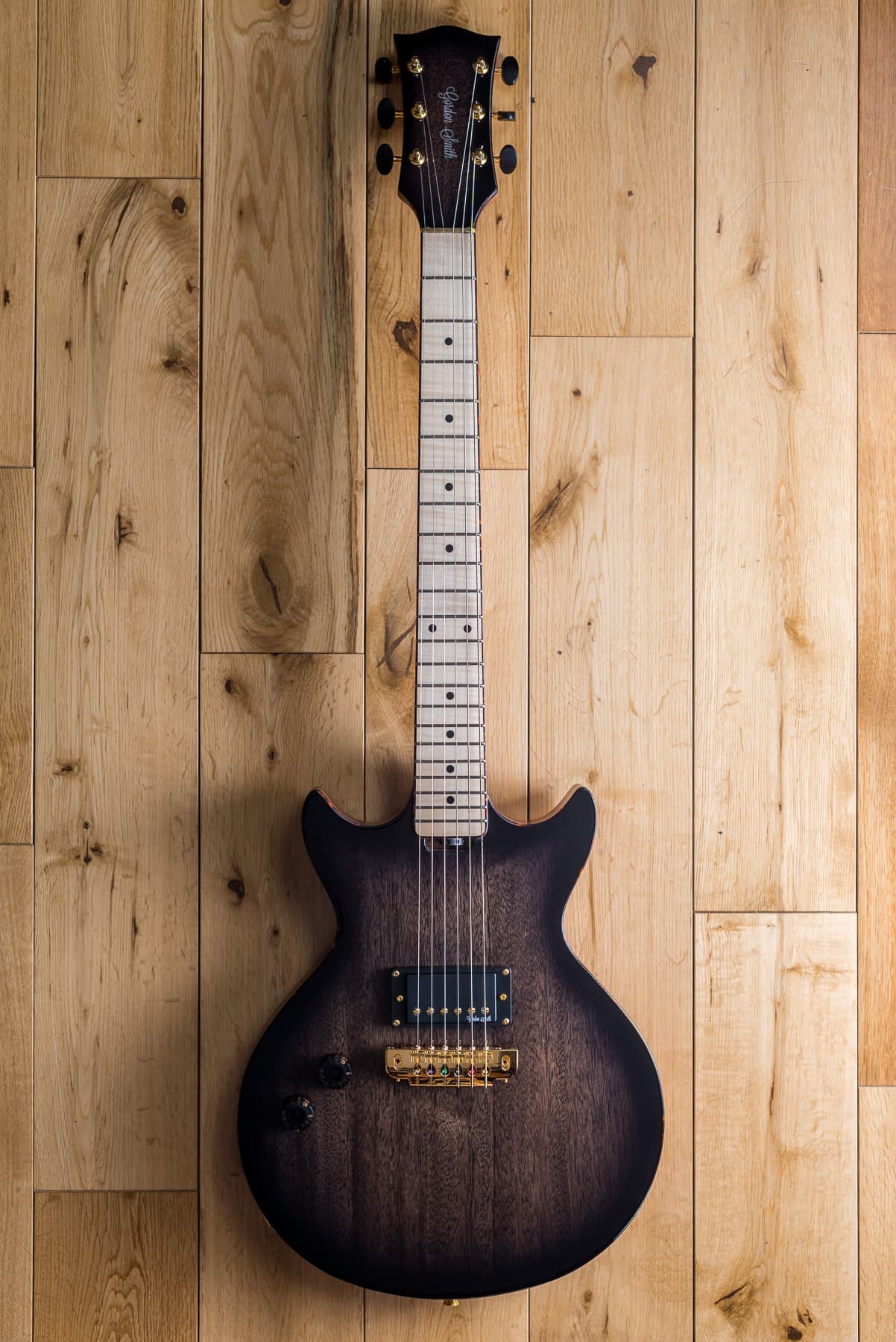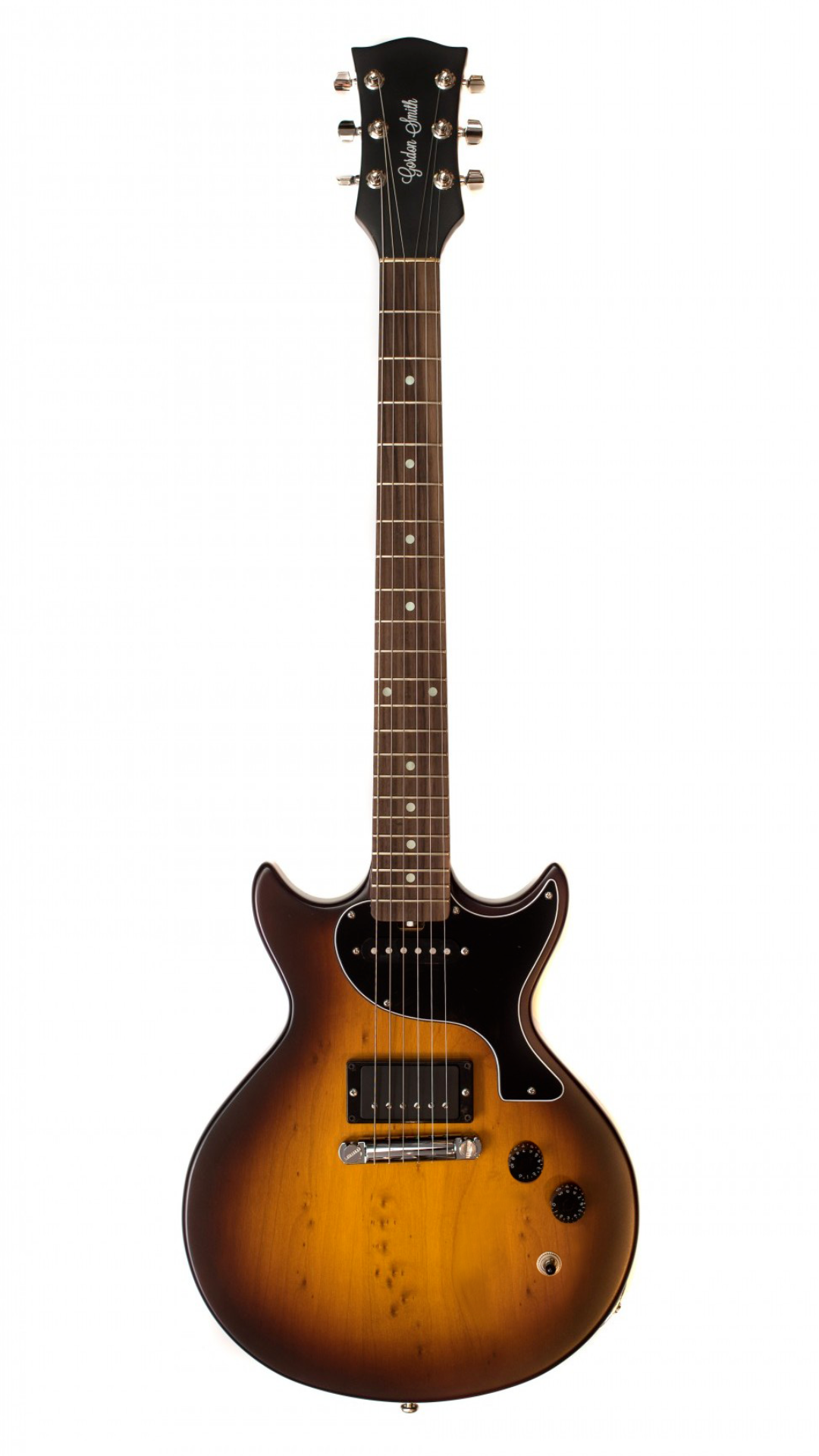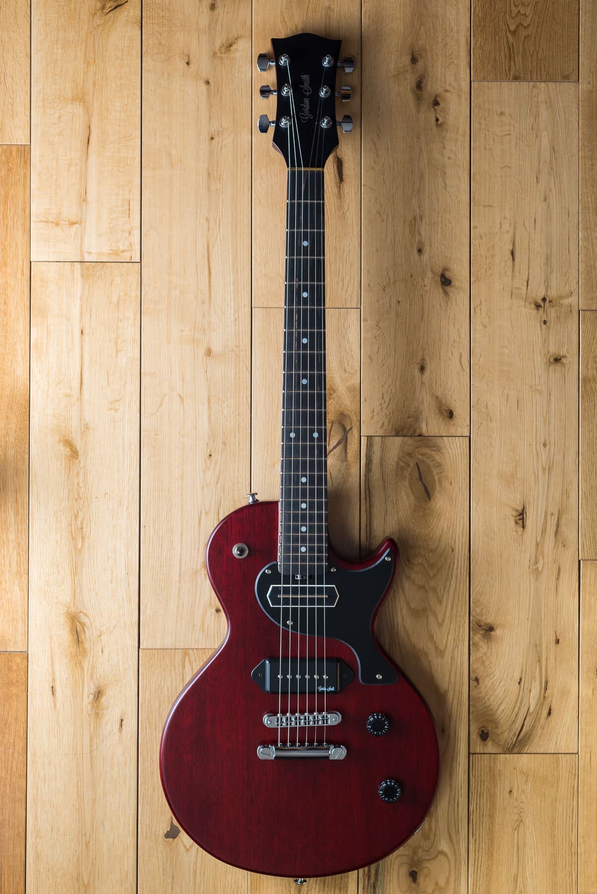 Gordon Smithのメインモデルである、ダブルカッタウェイ・ボディのLP-JrスタイルのGS1は、ブラジリアン・シダー・ボディ&ネック/ローズ指板を基本仕様に、ハンドワインディングによるオリジナル・ローノイズ・ハムバッキング・ピックアップを1基搭載し、世界で初めてコイルタップをギターに採用したことでも知られるGordonSmithならではのPush-Pullによるコイルタップも搭載。