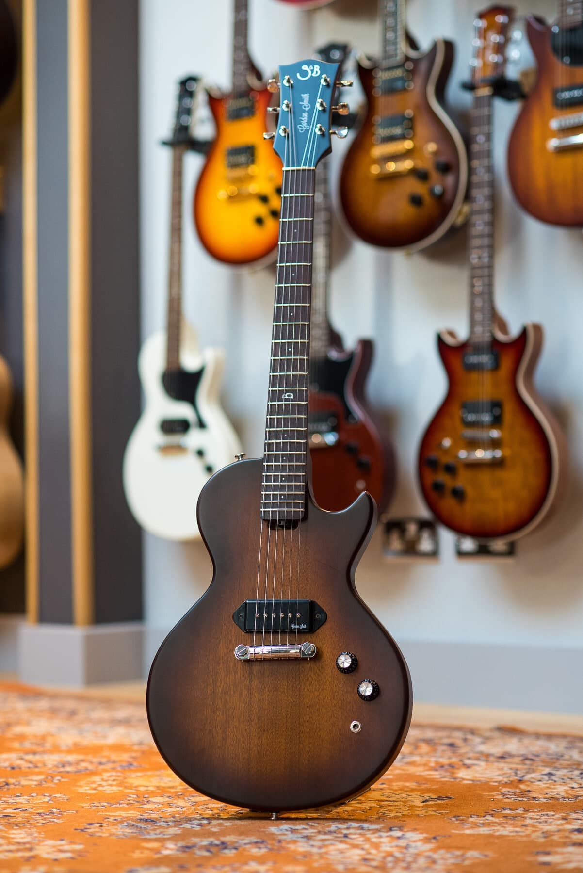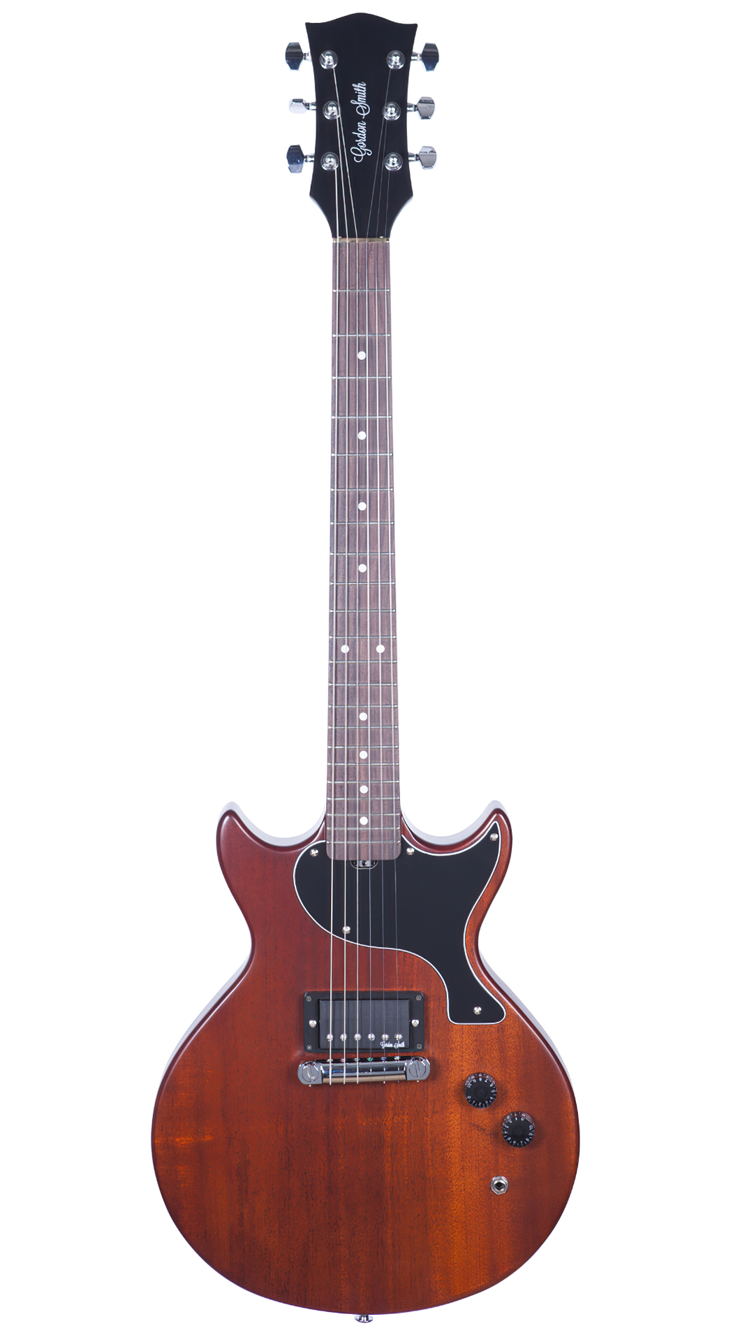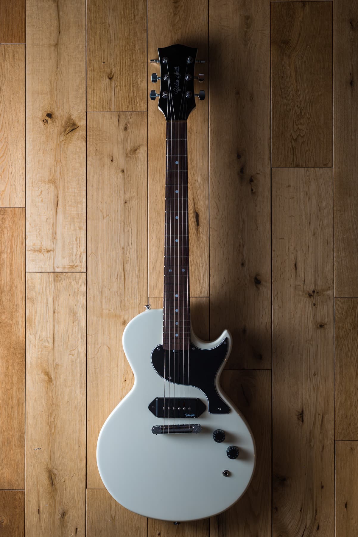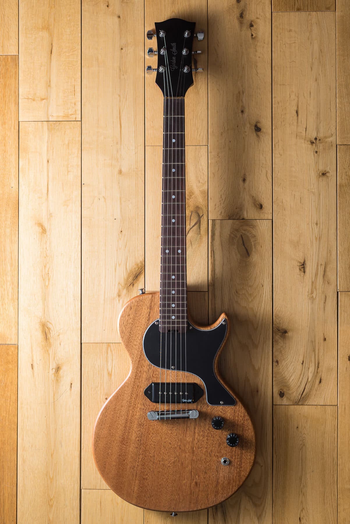 Gordon Smithのメインモデルである、ダブルカッタウェイ・ボディのLP-JrスタイルのGS1は、ブラジリアン・シダー・ボディ&ネック/ローズ指板を基本仕様に、ハンドワインディングによるオリジナル・ローノイズ・ハムバッキング・ピックアップを1基搭載し、世界で初めてコイルタップをギターに採用したことでも知られるGordonSmithならではのPush-Pullによるコイルタップも搭載。