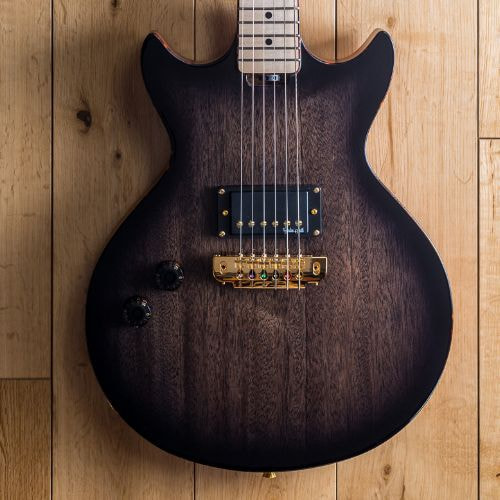 基本仕様では、シダーボディによる材の特性と、約37mmの薄いボディ、オリジナルのピックアップの組み合わせにより、ハムバッキングながら、研ぎ澄まされたエアリー・サウンドでパンチのある、軽快なロック&パンク・サウンドが魅力。そして、軽量で取り回しの良さ、材の温もりが伝わるような素朴な作りも魅力の一つです。