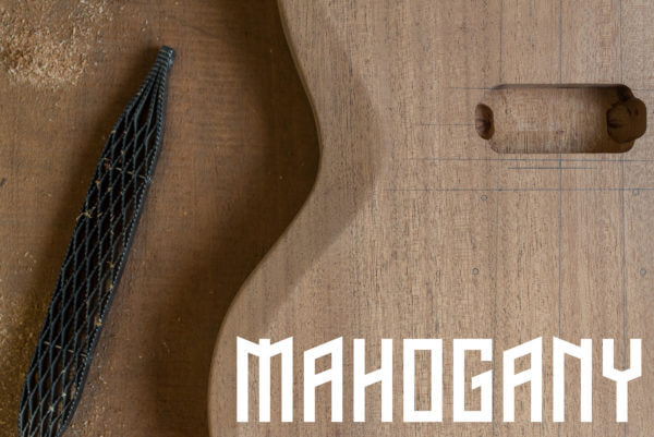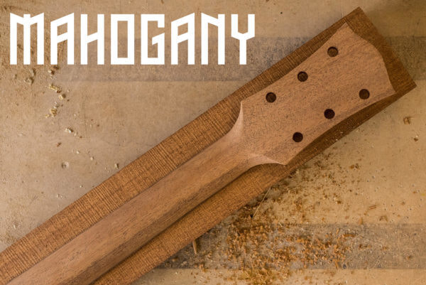 マホガニーはボディとネックの定番で、かなり密度の高い、中から重めの木材で、深みのある温かくバランスのとれた音色が特徴。
