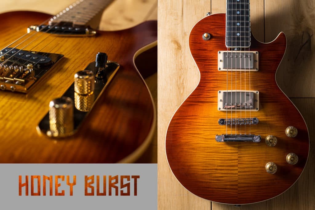 印象的な木目のCap(トップ材)や人目を引くVeneer(化粧板)で、ギターを際立たせましょう。