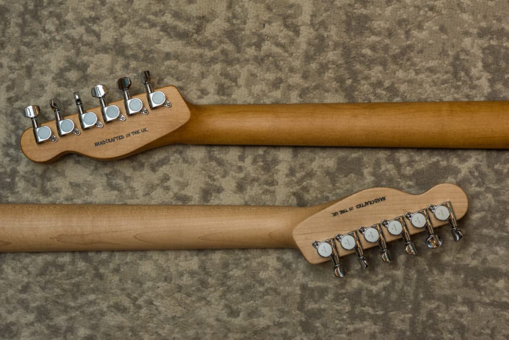 メイプルネックには前処理が施されており、自然な感じでヴィンテージ風の色合いに暖められています。