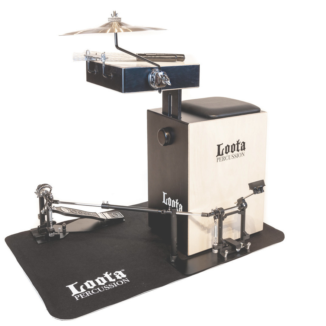Loota Percussion社長のMika Lilja(ミカ・リルヤ)はプロのミュージシャンであり、長身のドラマーである。ある時ライブでカホンを叩き、その演奏性、サウンドに納得がいかなかった彼は、そういう場面でも快適なポジションで演奏でき、より柔らかく音楽的なドラムサウンドを得るための方法があるはずと考え、これを発明しました。ミュージシャンがロードとスタジオの両方で使用するためのコンパクトでユニークなボックスドラムセットです。Lootaドラムはは全て高品質なフィンランド産バーチ材100%を使用してハンドメイドで製作されています。