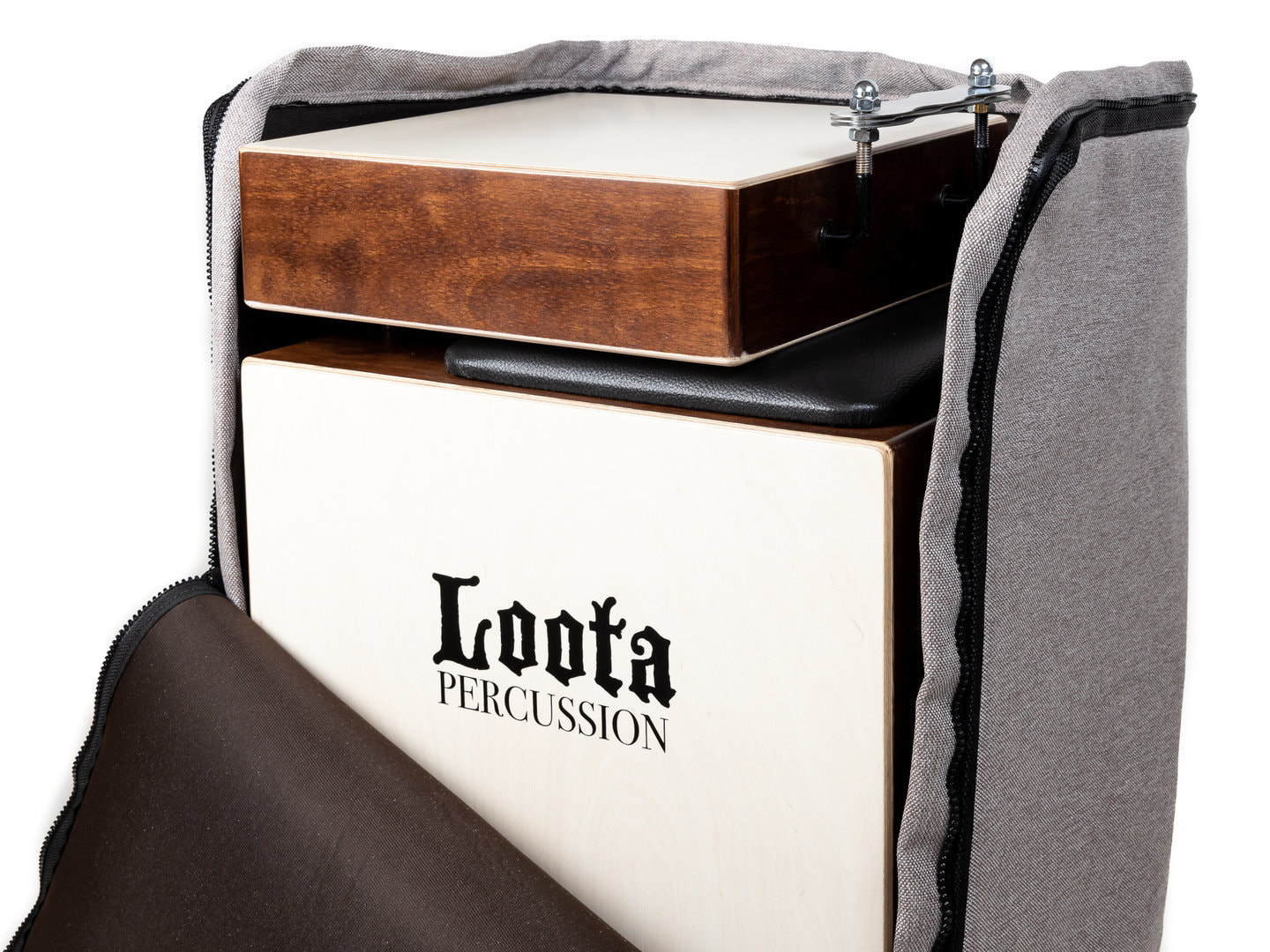 アフロ・ペルースタイルのカホン・ボックスドラムにインスパイアされたLootaのバンドル・ドラムセットは、単なるカホンを超えた多くの音楽的プレイを可能にします。アコースティックなアンサンブルに最適で、どこでもプレイを楽しめます。Lootaのスタンダードバンドルセットには、ベースボックス、スネアドラム、リボンクラッシャー、シンバル、マット、専用ギグバッグが含まれます。