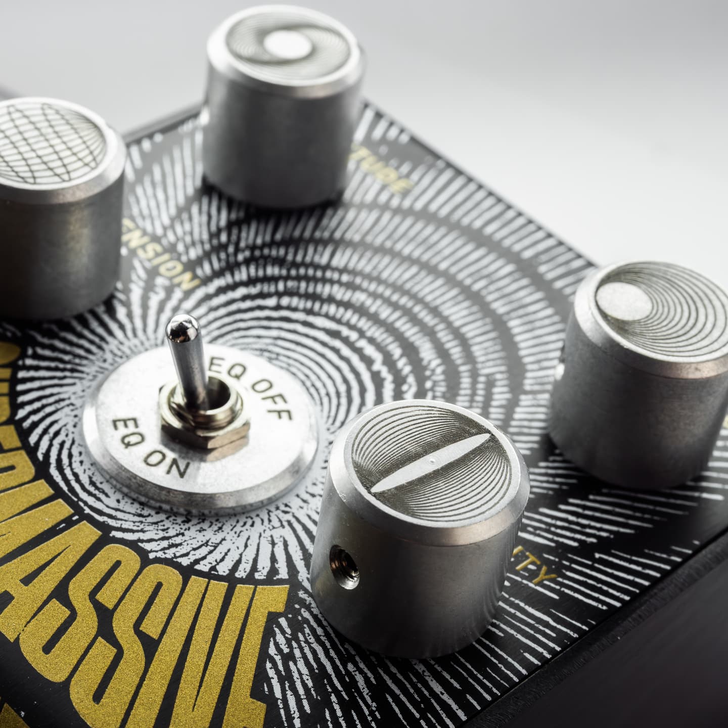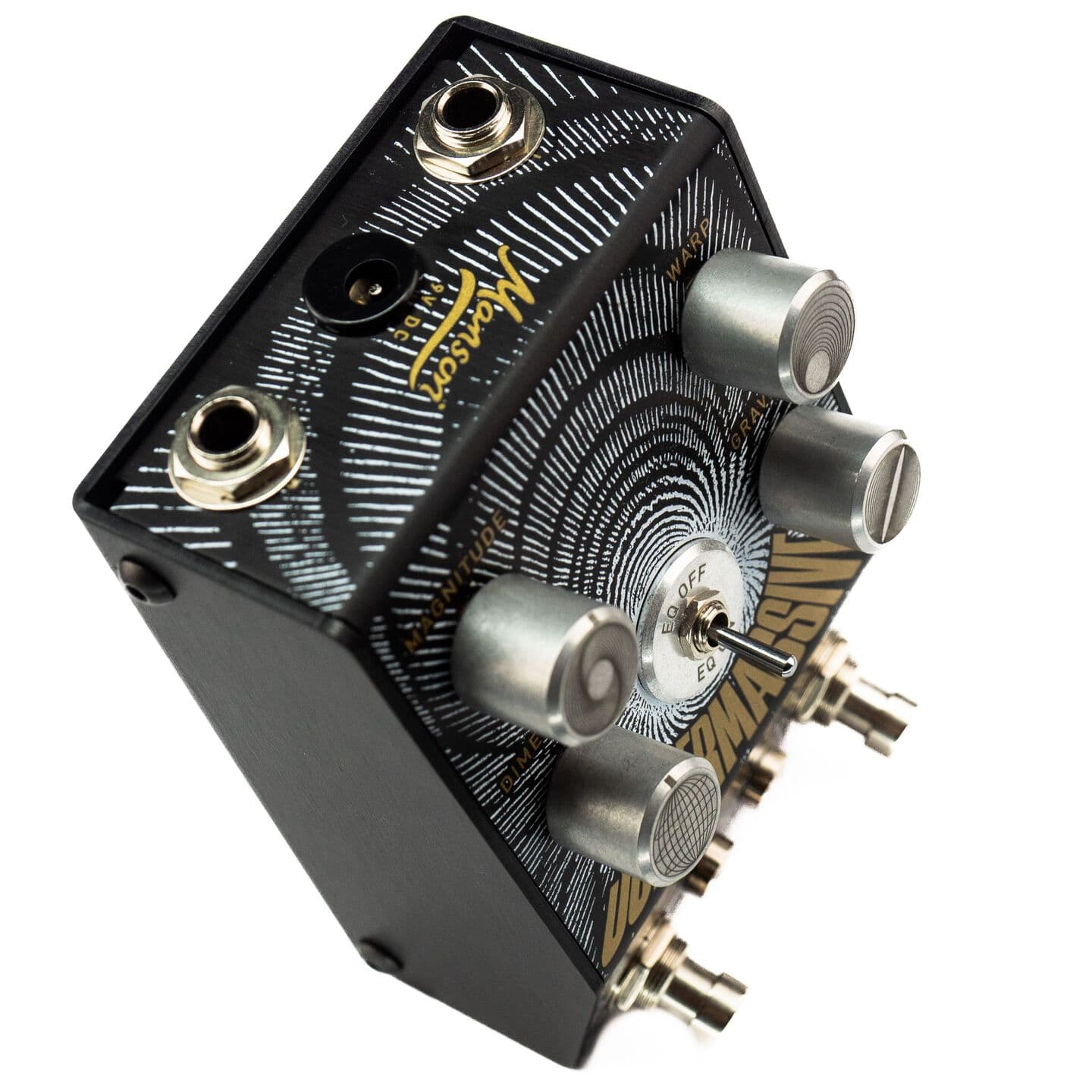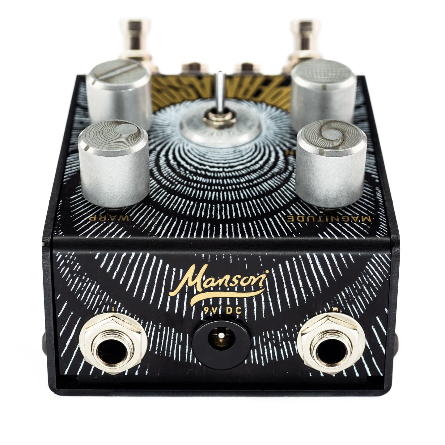 Manson Guitar Worksの伝統どおり、細部の作りにも一切の妥協がありません。安っぽいプラスチックノブではなく、英国製の強度に優れたアルミ(6082T6)から削り出した特製金属ノブを採用。 橋の建設にも使われるほど頑丈な素材です。ステンレス製のネジでしっかり固定され、それぞれのノブには「Magnitude」「Warp」「Dimension」「Gravity」を表すオリジナルの刻印が入っています。 LEDランプで電源やフィルターの状態もひと目で確認できます。