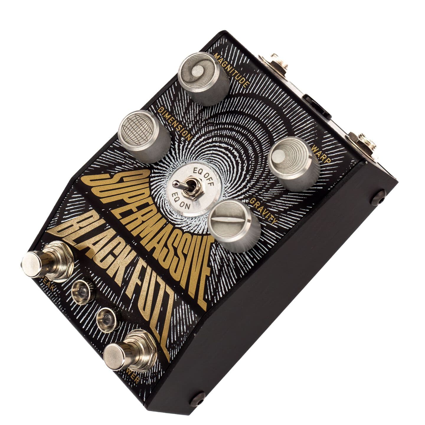 本体は、ブラックアルマイト加工が施された丈夫な筐体で、宇宙をイメージしたデザインが特徴です。Supermassive Black Fuzzには、4つのノブ、EQセレクタースイッチ、そして2つのフットスイッチが搭載されています。これらによって、昔ながらのヴィンテージ・ファズサウンドから、まるで別世界のような激しいディストーションまで、幅広い音作りが可能です。EQを調整すれば、まさに“スーパーマッシブ”なインパクトを生み出せます。