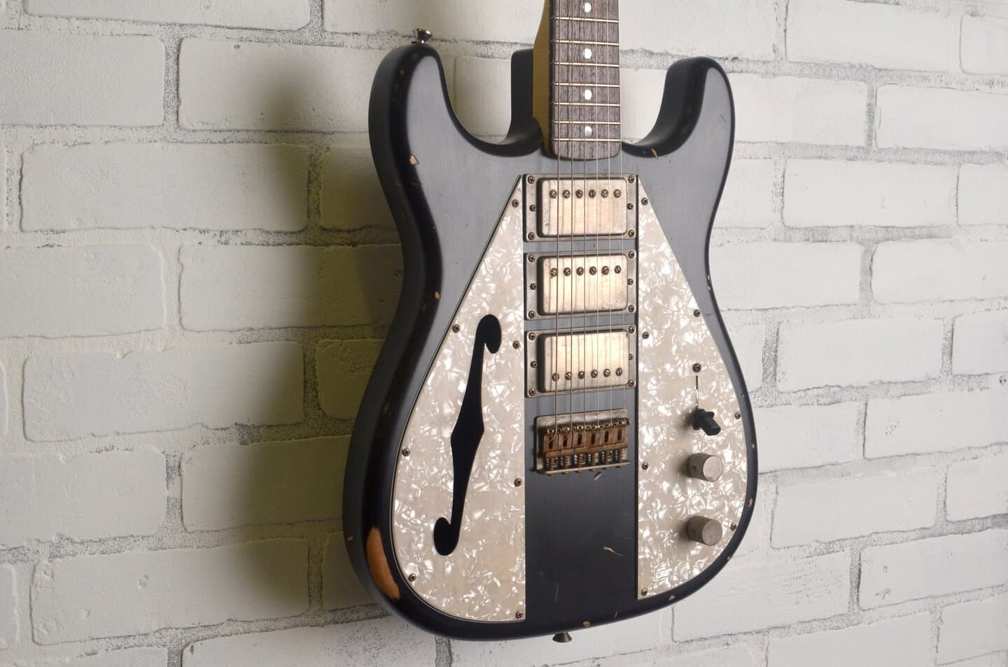 ほとんどのセミホロウギターはラミネートトップで構成されていますが、これは音色に影響を与えるだけでなく、サスティーンを拡散させ、楽器のセンターマスからエネルギーを奪ってしまいます。ウェイファーラーでは、独自のピックガード処理により、ソリッドボディの音色とサスティーンを維持しながら、セミホロウボディの利点を実現しています。