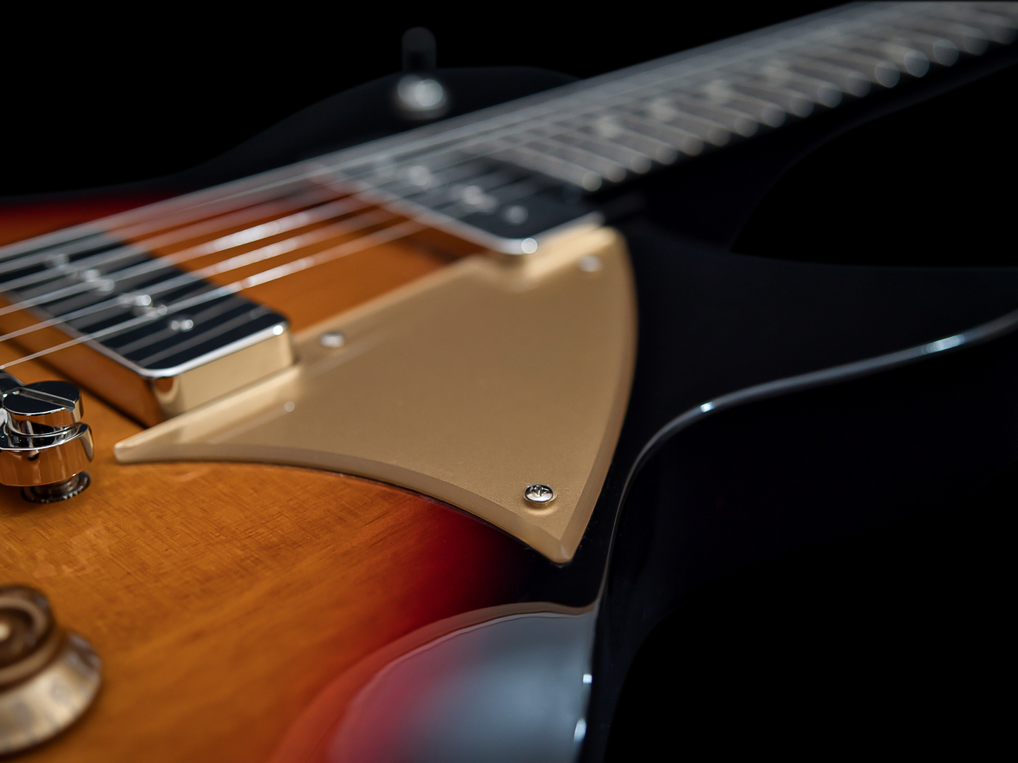 スケールは一般的なロングスケール(約648mm)を採用しており、コントロールは1Volume、1Toneを採用し、シンプルで扱いやすい設計となっております。ピックアップにはRivolta “Novanta” P-90を2基搭載。切れ味と明瞭感を備えたサウンドを出力します。クリーンはもちろん、ドライブサウンドとの相性も抜群です。