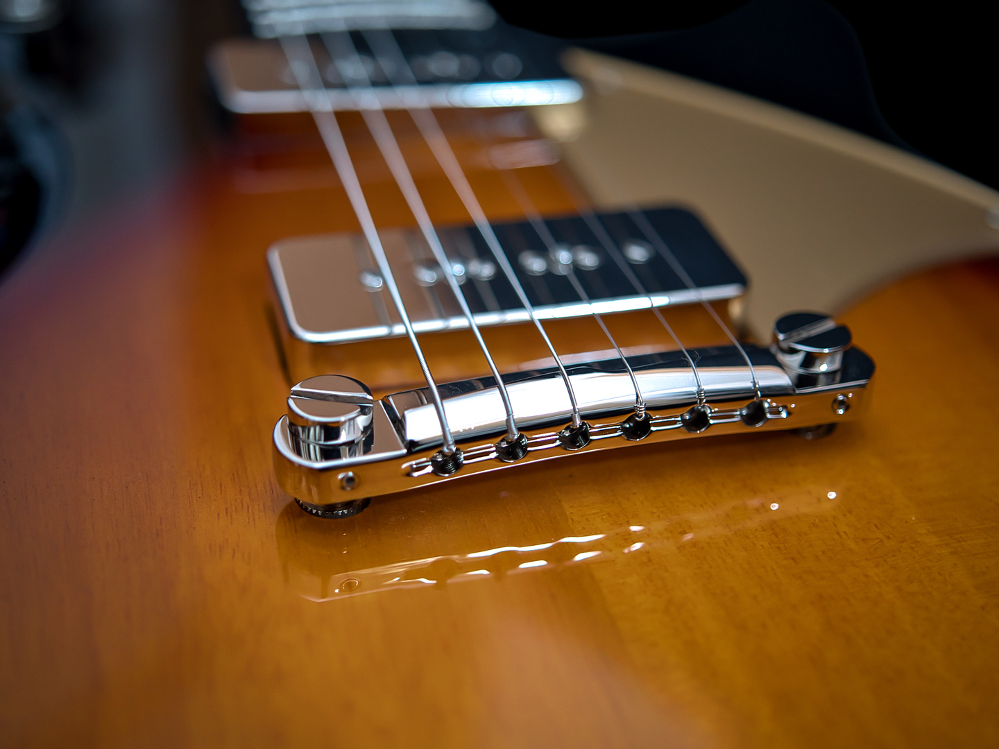 完璧なイントネーションと優れたチューニングの安定性を可能にするために削り出された、軽量なアルミニウム製ラップオーバーブリッジ。