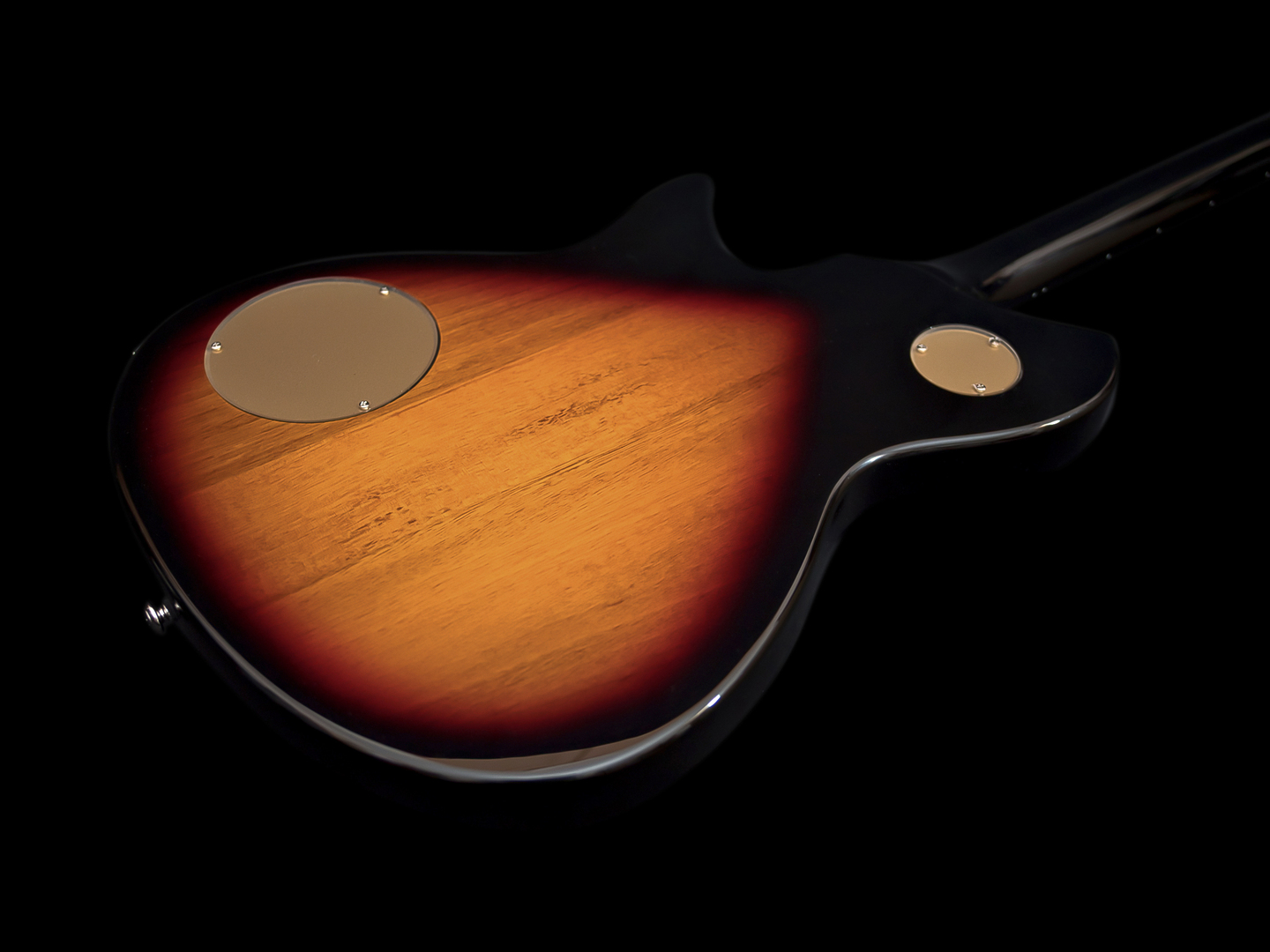 優雅なジャーマンカーブは、Combinataの美学にクラシックでヴィンテージな佇まいと深みを添えています。マホガニーのチェンバードコアと並んで、カーブは楽器の重量を軽減し、楽な演奏体験をもたらします。
