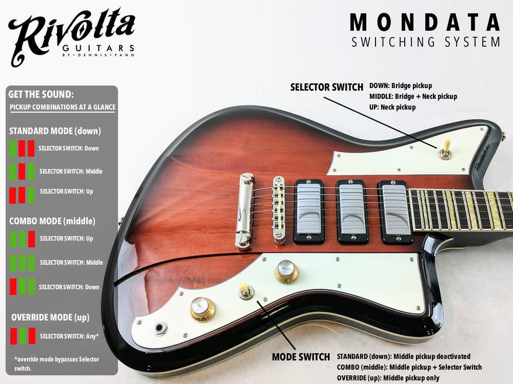 Rivolta Mondataからヒントを得たこの新しいモデルは、Mondataの3ピックアップレイアウトとスイッチングシステムを融合させ、Combinataのアイコンである美学を表現しています。