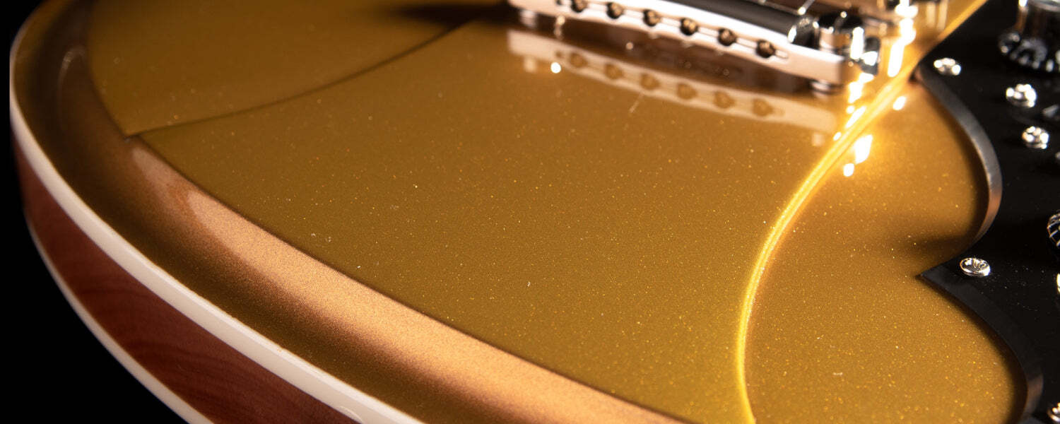 Mondataは、60年代のクラシックギターのデザインを踏襲した、高めのセンターブロックを特徴としています。ドイツ製の彫刻が施されたウイングセクション、緩やかなフォアアームコンター、マホガニー製のチェンバード構造により、重量を軽減し、楽に演奏できるようになっています。
