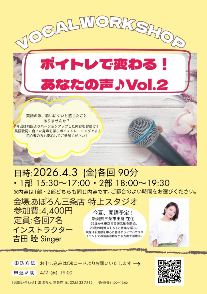 ボーカルワークショップ ボイトレで変わる!あなたの声♪Vol.2開催【三条店】