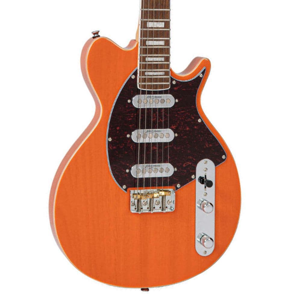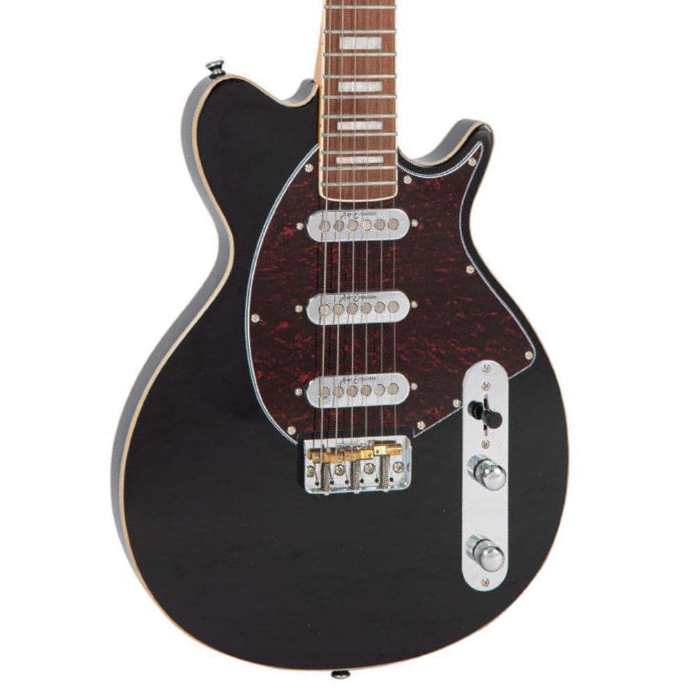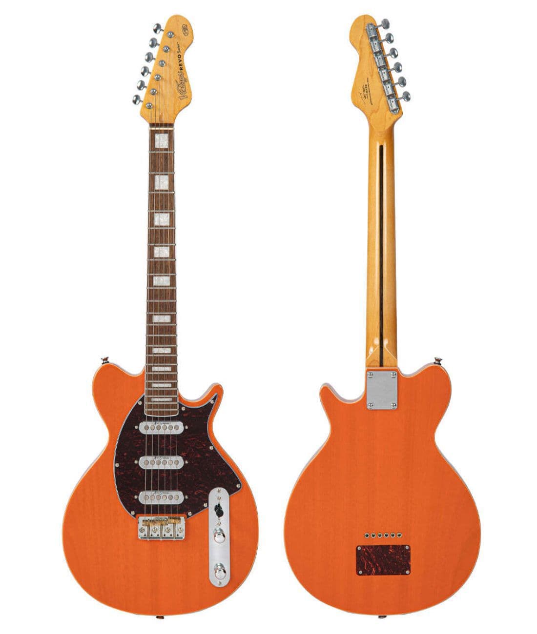 メイプル・ネック、ブロック・インレイが施されたバウンド22フレット指板、5ウェイ・セレクター・スイッチ、ウィルキンソン・マシン・ヘッド、グラフテック・プレシジョン・カット・ナット、ウィルキンソン・3サドル・ハードテイル・コンペンセイティング・ブリッジを備えたキュートなRevo Visionは、サスティーンを向上させるユニークなトランソニック・スプリング・キャビティをリアに備えたバウンド・ボディでロックする準備が整っています。